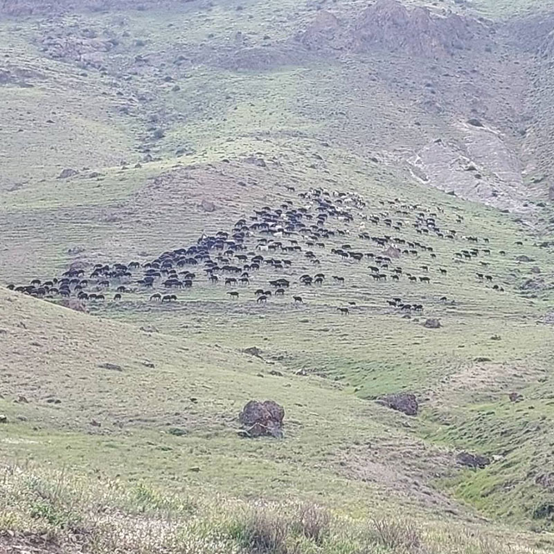 گله دام در مرتع کوهستانی – چراگاه بهاری در دامنه‌های سرسبز